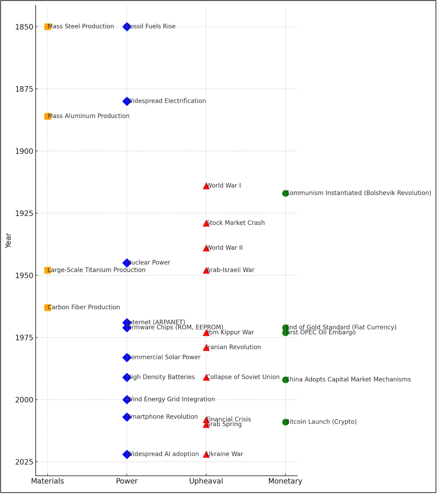 Throughout history, technological and systemic transitions — in money, materials, or power sources — have consistently triggered inequality spikes, mass migration, and violent upheavals. Transitions can destabilize societies when new systems undermine existing elites or resources balances.