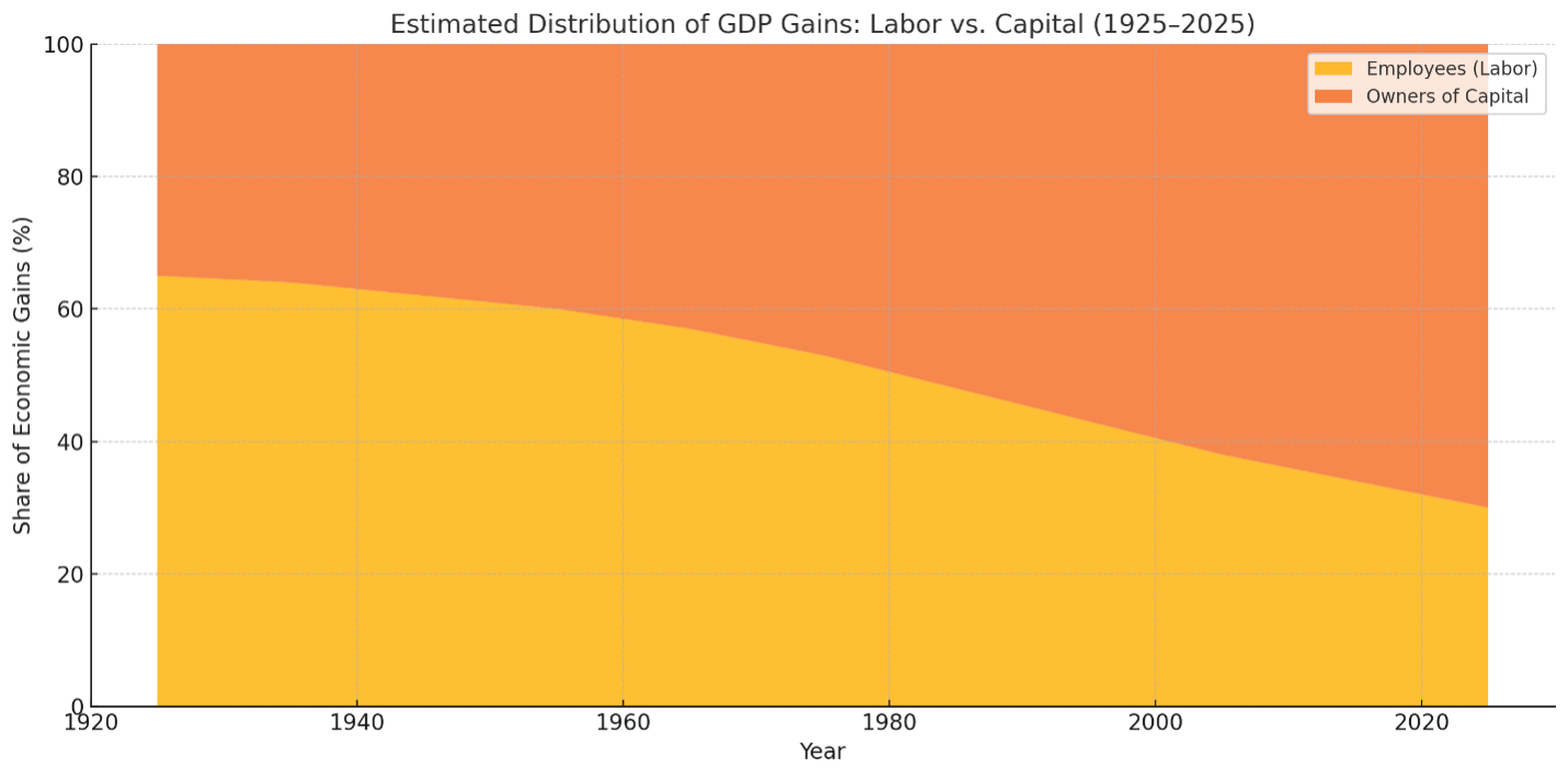 Despite automation, corporate and political elites blocked further reductions to sustain consumer demand and worker discipline. There are benefits of greater GDP, but they are disproportionately better for the owners of capital than for laborers.